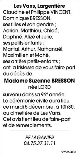 Madame Suzanne BRESSON née LORD