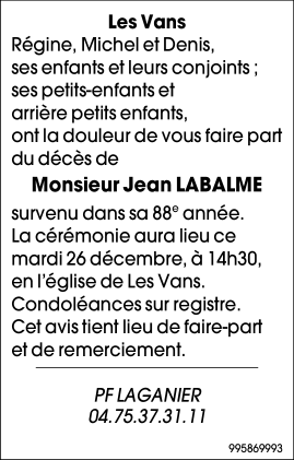 Décédé à Chambonas (07140, France) le jeudi 21 décembre 2023 à l'âge de 87 ans