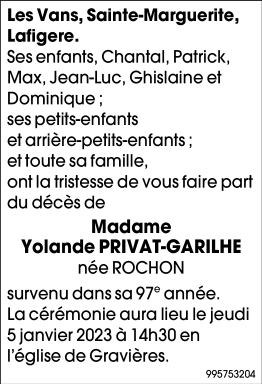 Madame Yolande PRIVAT-GARILHE née ROCHON