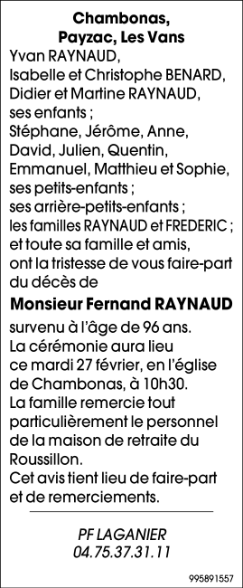 Né à Chambonas (07140, France) le jeudi 1 décembre 1927